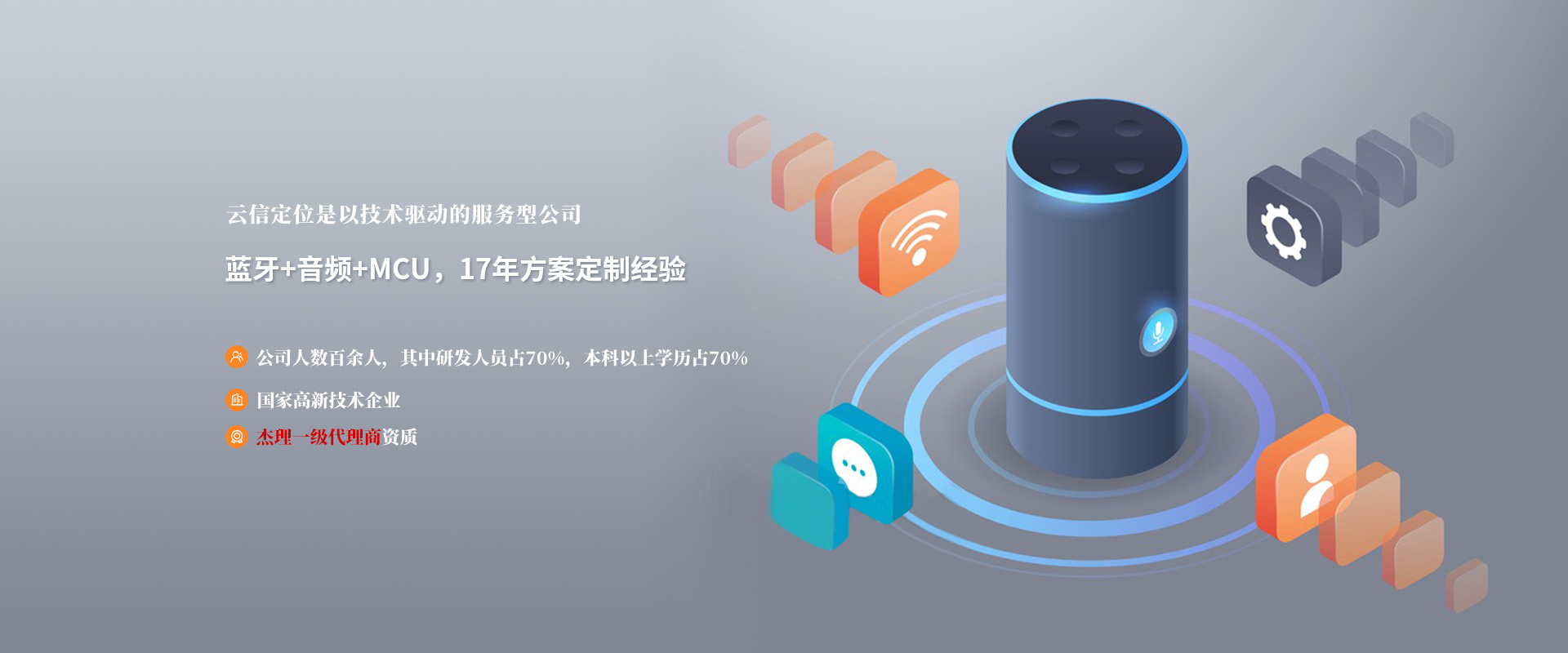 深圳市云信通訊技術有限公司是一家以技術為核心,專注于杰理芯片供應以及整體解決杰理方案的國家高新技術企業。作為杰理科技的一級代理商和方案商,我們提供杰理藍牙產品線,包括杰理芯片,杰理語音芯片,杰理BLE芯片,杰理藍牙wifi芯片,杰理音頻解碼芯片等全系產品,擁有多項產品認證和20余項目專利以及軟件著作權。